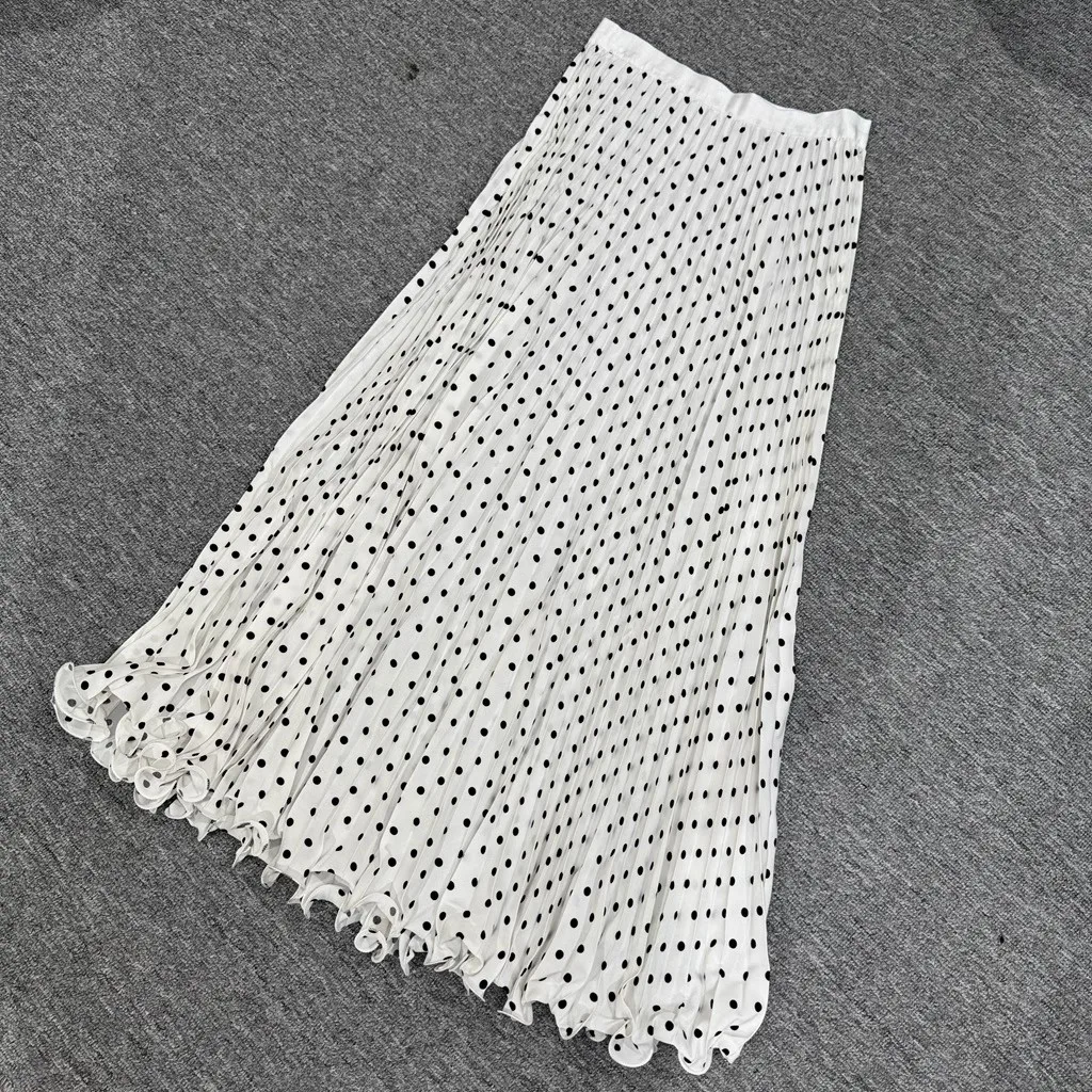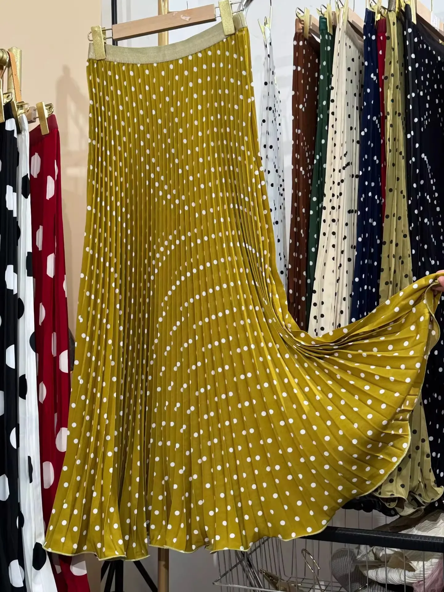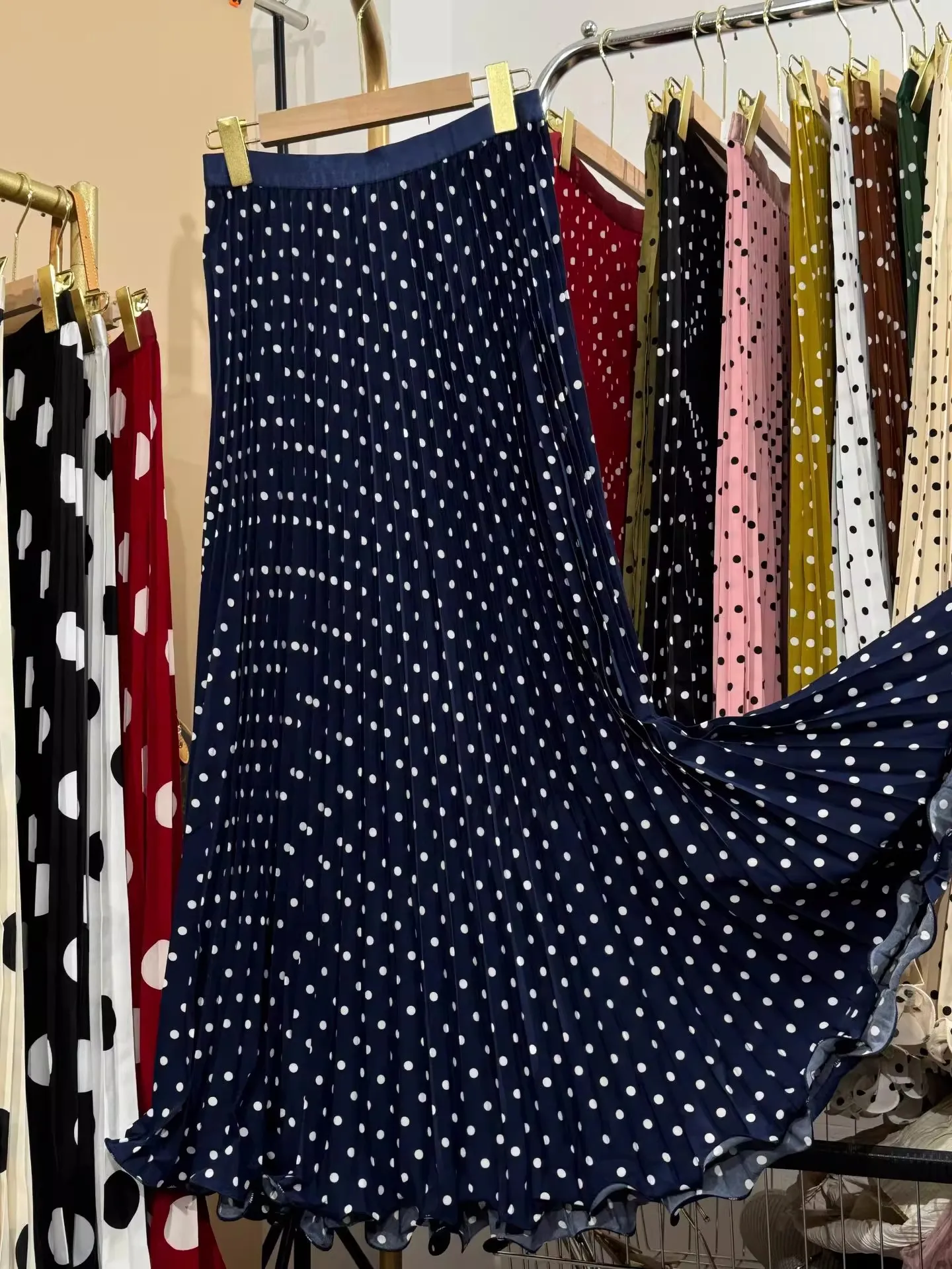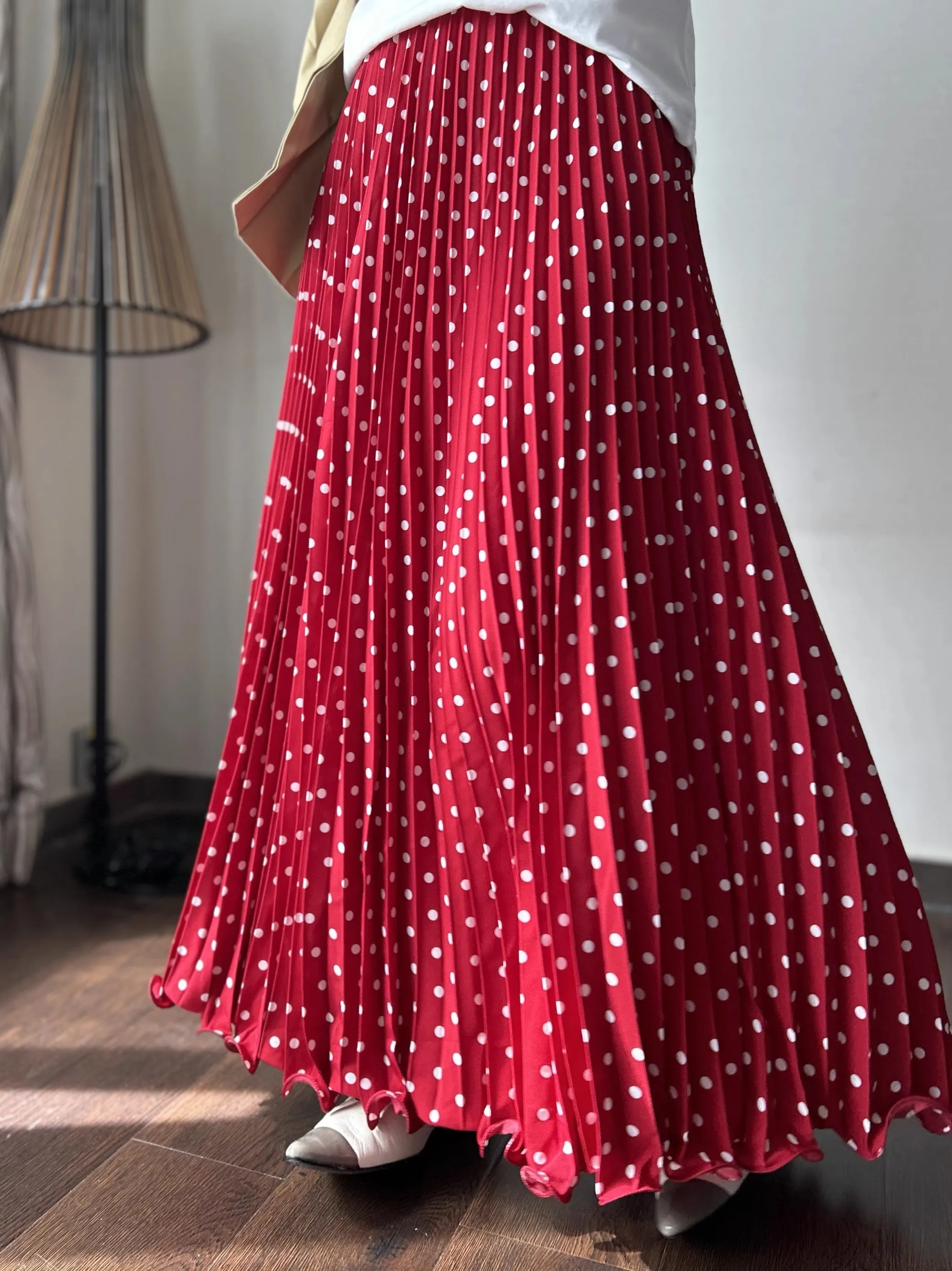 Esta saia longa com cintura alta apresenta uma estampa clássica de poá, combinando elegância e conforto. Seu corte alongado valoriza a silhueta, enquanto a cintura alta proporciona um ajuste seguro e sofisticado. Ideal para ocasiões que pedem um toque de estilo refinado, é uma peça versátil que pode ser facilmente combinada com blusas e acessórios variados.