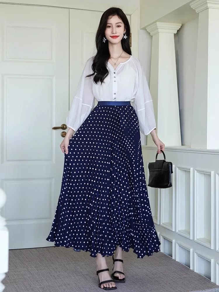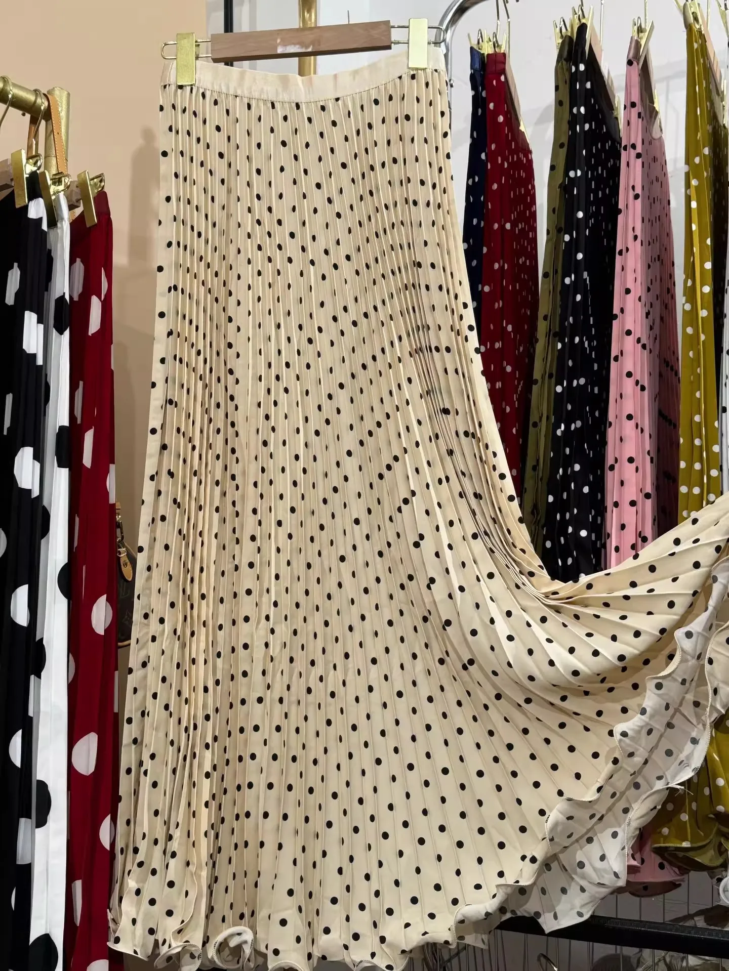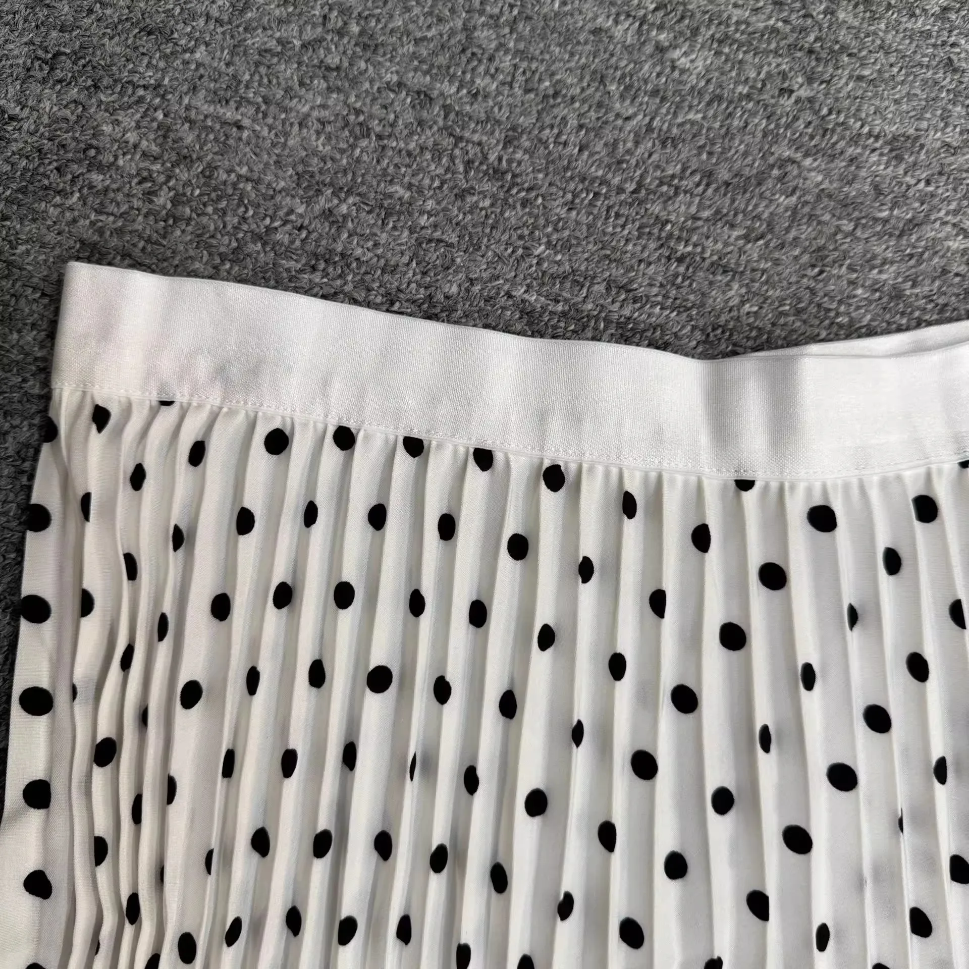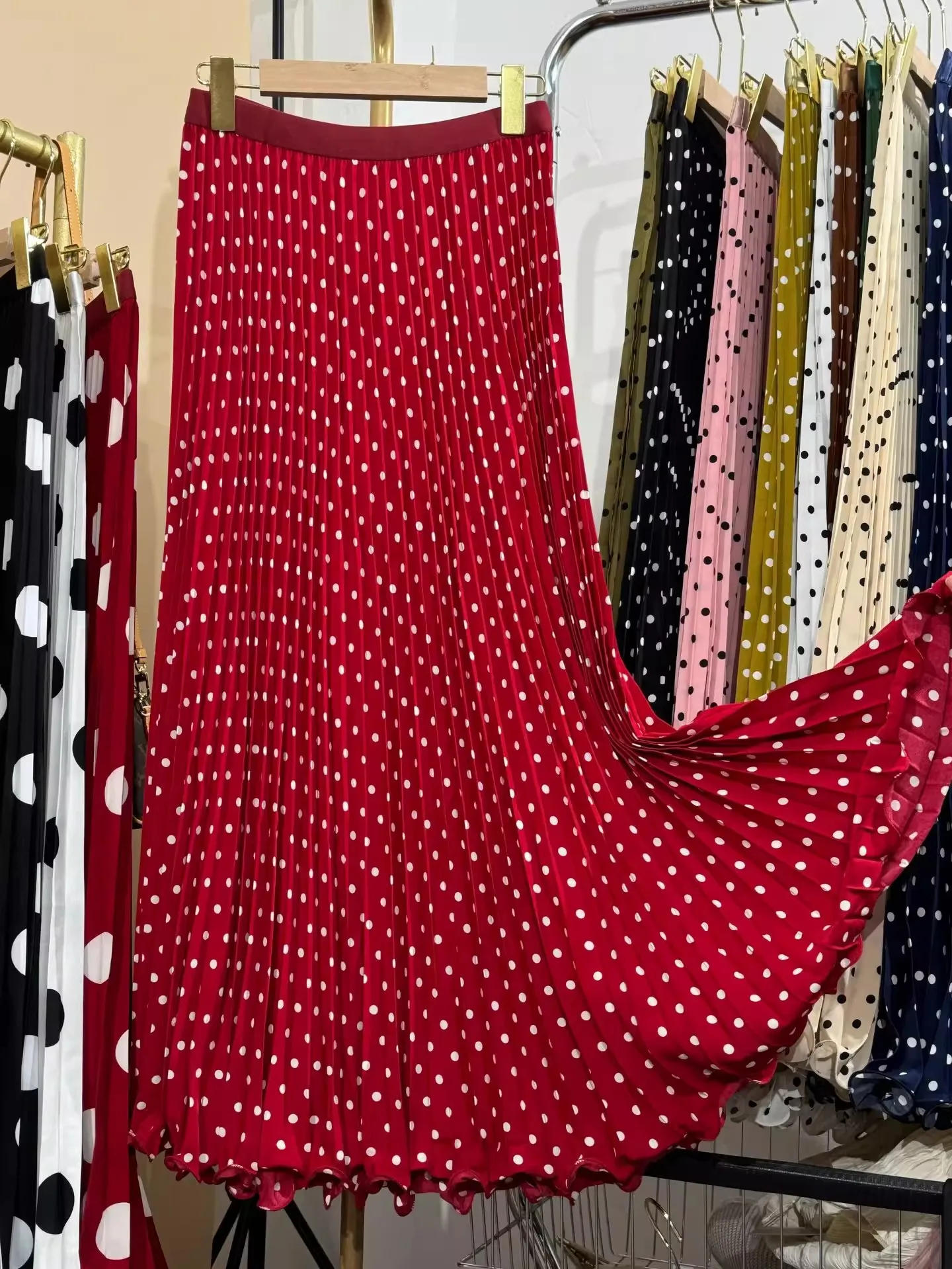 Esta saia longa com cintura alta apresenta uma estampa clássica de poá, combinando elegância e conforto. Seu corte alongado valoriza a silhueta, enquanto a cintura alta proporciona um ajuste seguro e sofisticado. Ideal para ocasiões que pedem um toque de estilo refinado, é uma peça versátil que pode ser facilmente combinada com blusas e acessórios variados.