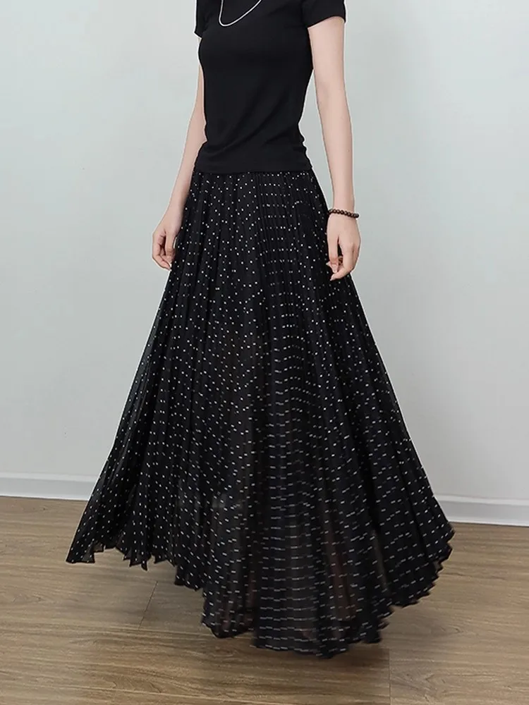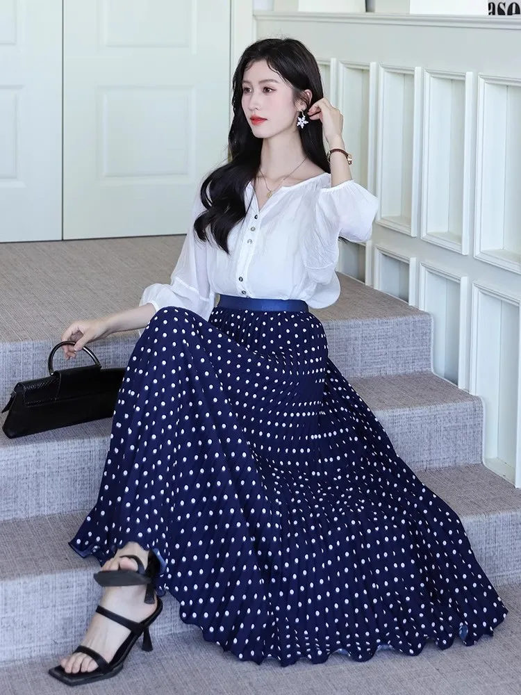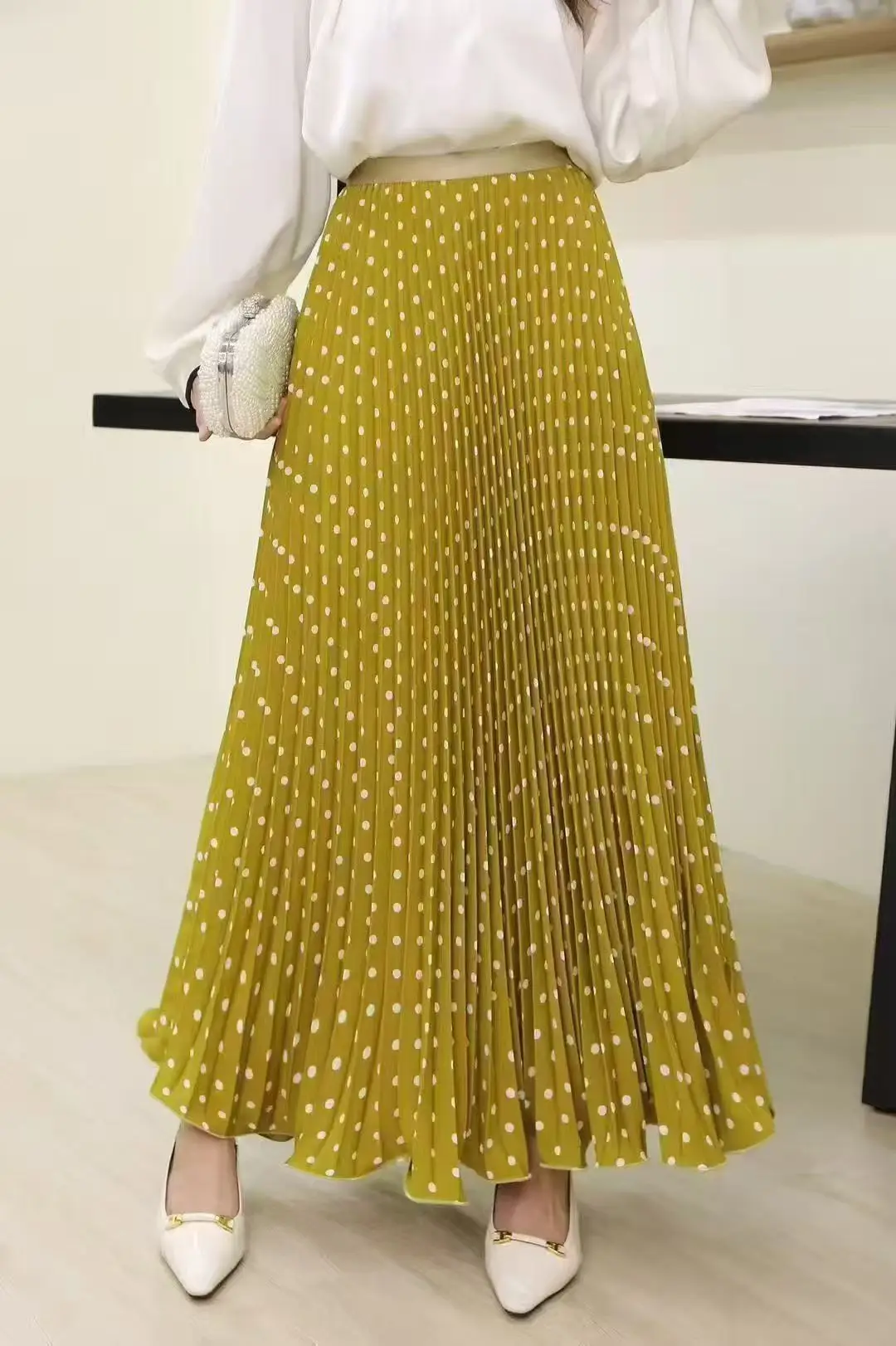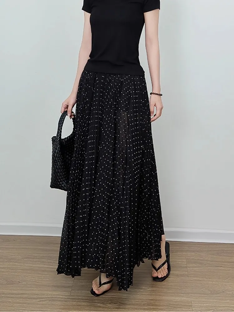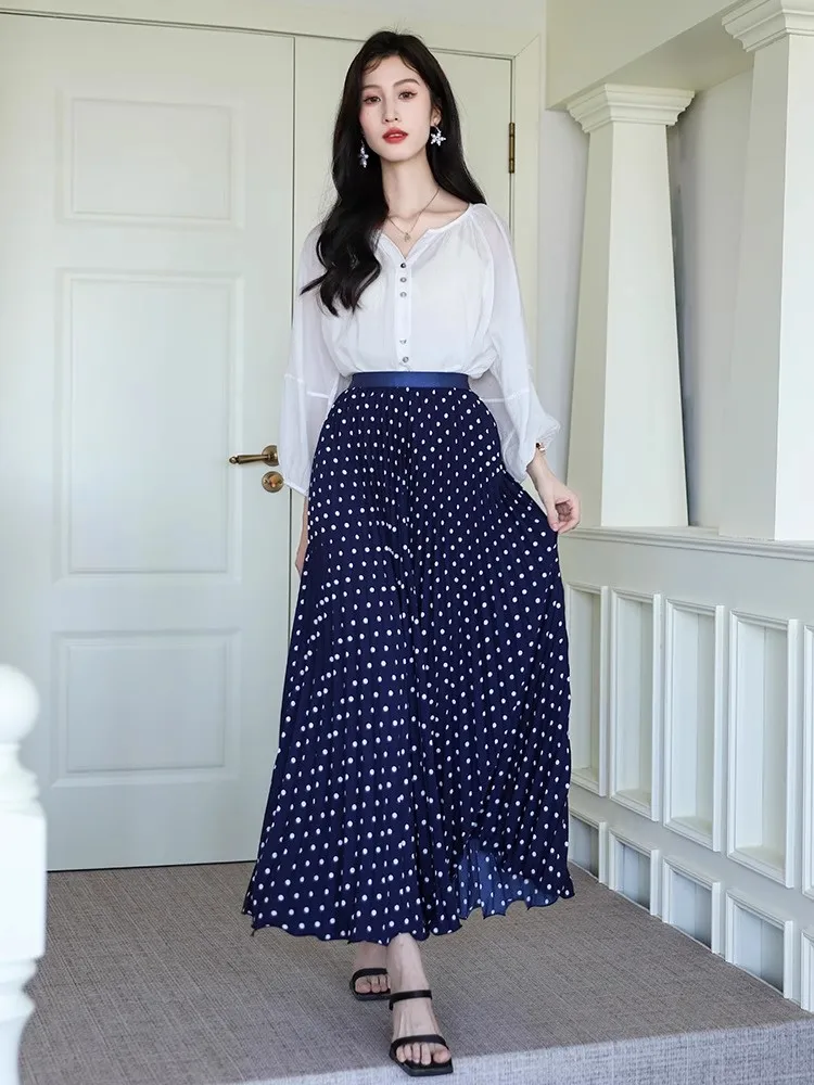 Esta saia longa com cintura alta apresenta uma estampa clássica de poá, combinando elegância e conforto. Seu corte alongado valoriza a silhueta, enquanto a cintura alta proporciona um ajuste seguro e sofisticado. Ideal para ocasiões que pedem um toque de estilo refinado, é uma peça versátil que pode ser facilmente combinada com blusas e acessórios variados.
